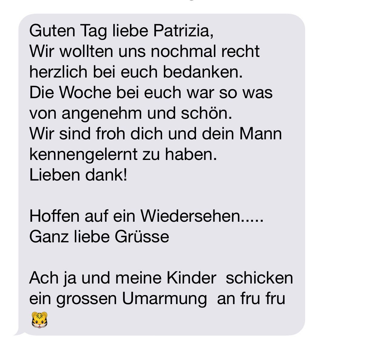 Entdecken Sie unsere Innen- und Aussenaufnahmen des Hauses, die Umgebung, unsere Dienstleistungen und die Nachrichten und E-Mails unserer Kunden!
